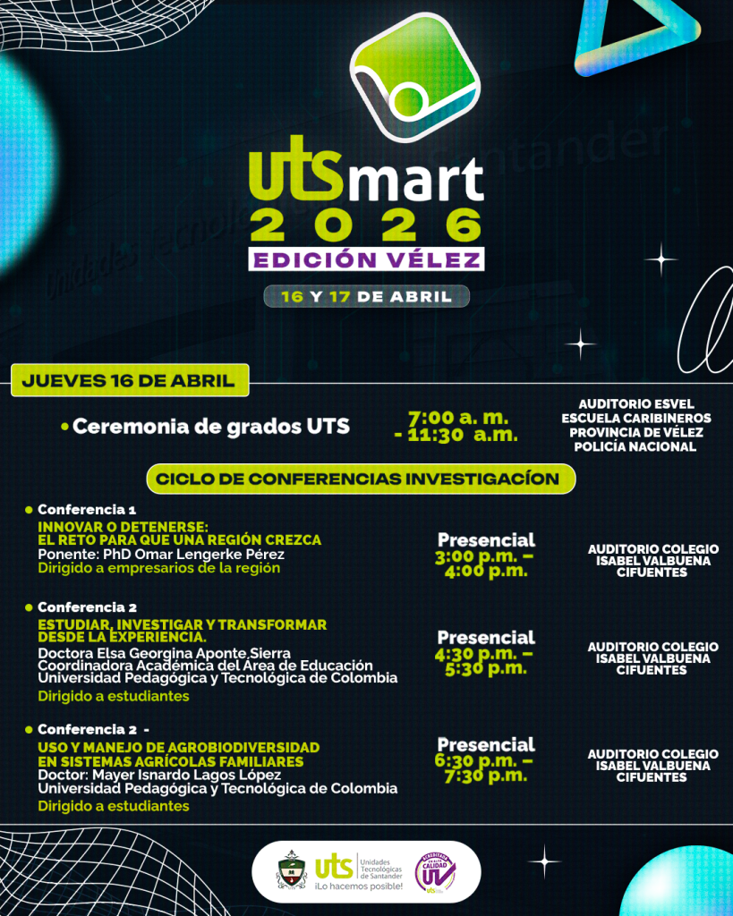 La innovación, el emprendimiento y el intercambio de conocimiento tienen una cita histórica en la provincia de Vélez. Por primera vez, las Unidades Tecnológicas de Santander (UTS) trasladan su emblemático evento UTSmart a esta importante zona del departamento, consolidándolo como el epicentro de la creatividad y el desarrollo regional.