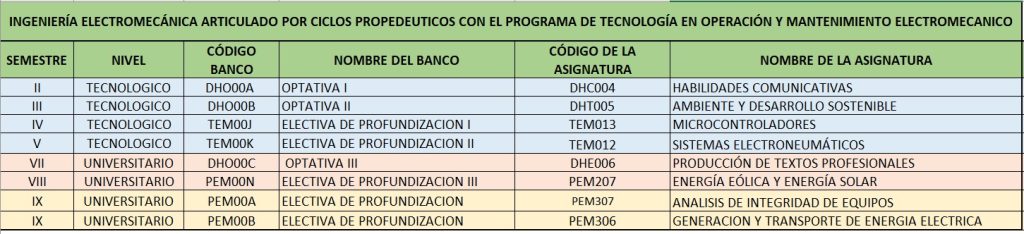 Tenga en cuenta que las asignaturas electivas y optativas hacen parte fundamental de su proceso de formación académica y del cumplimiento del plan de estudios de cada programa.
