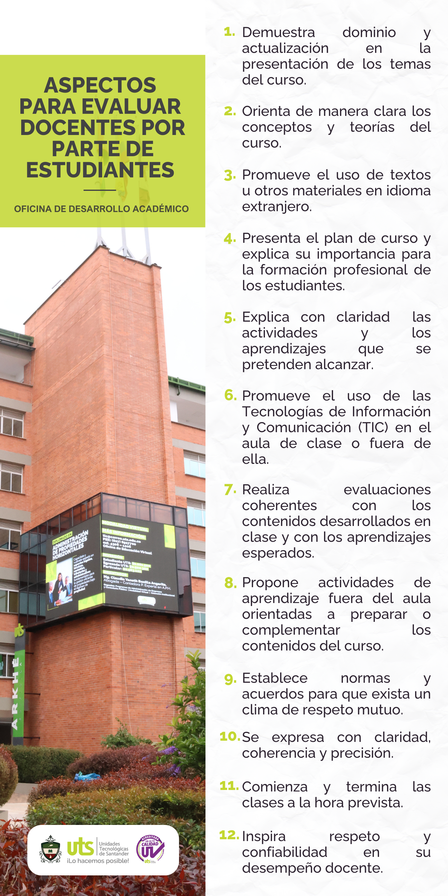 Aspectos para evaluar docentes por parte de estudiantes