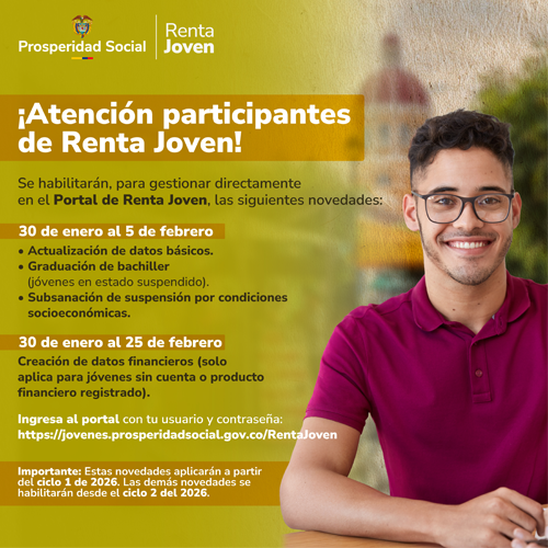 habilitará el registro de novedades a través del Portal de Renta Joven, las cuales podrán realizarse durante los períodos establecidos: 30 de enero al 25 de febrero de 2026.